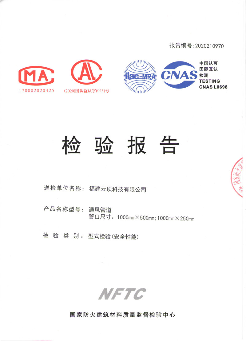 福建云顶科技有限公司以领先的技术,品质过硬,产品全面,为广大客户提供先进的通风产品解决方案。公司主营装配式空调风管与装配式防排烟风管,产品服务于新建项目、扩建项目及改造项目。公司已通过ISO9001:2015质量管理体系、 OHSAS18001-2007职业健康安全管理体系,ISO14001-2015环境管理体系认证。以科学成熟的生产工艺,完善的品质检测体系,保证了产品的先进性和最终质量的稳定性。